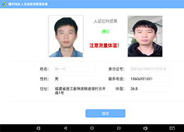 方案背景 受新冠肺炎疫情影響延長春節(jié)假期后,復工大潮來臨,疫情防治進入關鍵期,全國多地實施封閉式管理,嚴格管控人員出入,采取全員登記制度,但目前大部分地區(qū)仍使用人工登記,手寫登記項目繁多,如姓名、電話、體溫、地址等,同時頻繁交叉接觸寫字筆會增加感染風險,人工識別身份信息準確率較低,影響疫情防控工作。 方案介紹 捷宇科技依托多年在圖像視覺與智能交互領域上的技術(shù)積累與優(yōu)勢,針對目前嚴峻的疫情防控形勢,推出《捷宇科技防疫登記信息管理解決方案》。 該方案由前端采集設備+后端管理系統(tǒng)組成,通過人臉識別、身份證識別、指紋采集等功能,1秒即可完成核驗身份信息,信息采集準確率高, 核驗全程無接觸自動化 ,降低了交叉感染的風險。 結(jié)合第三方測溫儀,支持錄入體溫信息,管理系統(tǒng)自動同步保存人員信息,免去打字錄入,同時可保存每日核驗人數(shù),可排查人員是否來自疫情嚴重地區(qū),若出現(xiàn)體溫異常人員便于查找,減輕一線防疫工作人員的壓力。 方案優(yōu)勢 無接觸 身份核驗自動化,全程無接觸,降低感染風險 好管理 支持人員登記信息批量導出與查找,減輕防疫人員工作壓力 多模態(tài) 設備類型豐富,針對不同場景,多種識別模式可選 高精準 核驗軟件基于深度學習開發(fā),準確率超過99.5% 推薦產(chǎn)品 DC13雙目活體檢測模組 配置300萬寬動態(tài)+130萬紅外雙目活體檢測攝像頭 N1330雙目攝像頭 配置300萬寬動態(tài)+130萬紅外雙目活體檢測攝像頭  支持吸附式、夾持式、三角架式 X2DC雙目身份核驗儀 配置雙目活體檢測攝像頭  采用USB接口,即插即用 X3DC雙目身份核驗終端 配置雙目活體檢測攝像頭、身份證模塊、指紋模塊 Z10P人證核驗終端 配置身份證模塊、指紋模塊、單/雙目攝像頭等 Z10S人證核驗終端 配置身份證模塊、指紋模塊、單/雙目攝像頭等 Z20多模塊核驗終端 配置單/雙目攝像頭、雙屏異顯異觸、身份證模塊、指紋模塊、二維碼模塊等 M70移動式人證核驗終端 配置單/雙目攝像頭、身份證模塊、指紋模塊、電池等
